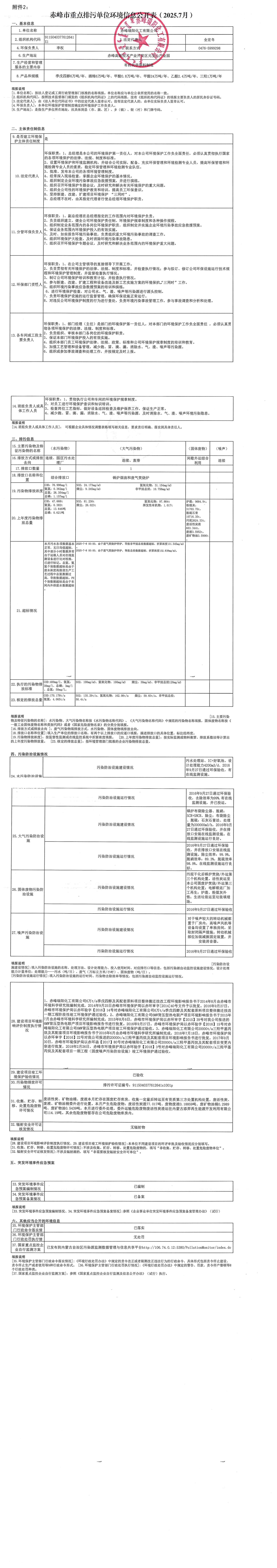 赤峰市重點(diǎn)排污單位環(huán)境信息公開(kāi)表【2025.07】